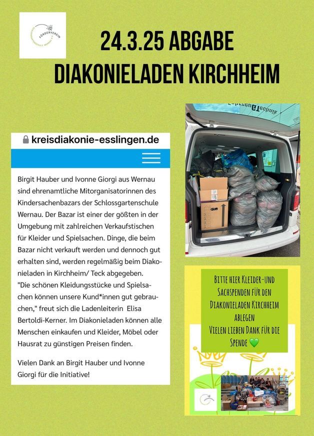 Die Spenden unserer Verkäufer werden verpackt und für den Diakonieladen in Kirchheim vorbereitet. Diese werden dann von uns per Transporter dorthin gebracht.